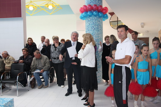 Речь Главы Одинцовского муниципального района Александра Гладышева была предельно краткой. «Мы строили, строили, наконец, построили» - сказал он. Затем гости и ученики дружно прошли в новое здание бассейна.